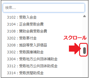 下向き矢印を押すと、候補科目がでてくるのでスクロールして選択