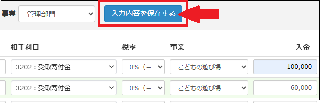 入力が終われば、上部の「入力内容を保存する」をクリック
