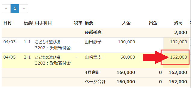 保存すると残高が表示されるので手元の帳簿の残高と一致しているかを確認