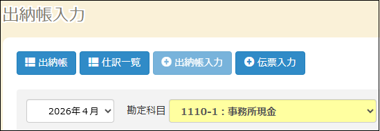 出納帳入力から、4月を選択、事務所現金を選択