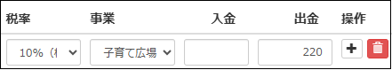 事業:子育て広場、金額:220円出金