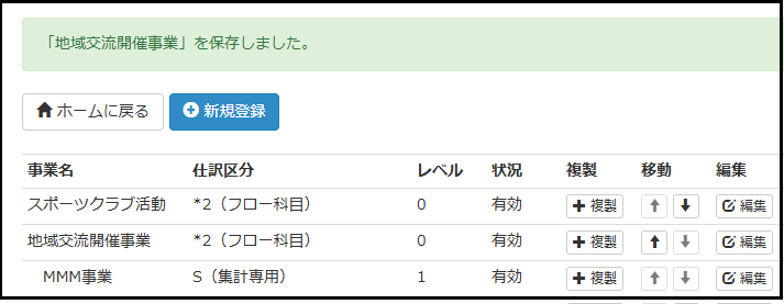 「事業別損益計算書」を作成するための「事業」の設定をおこないます