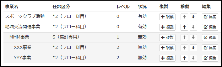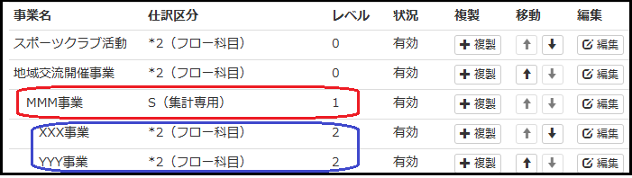 ③今回は2つの事業(レベル0)だけなので、「ABC事業」と「KKK事業」を使い、他は削除する