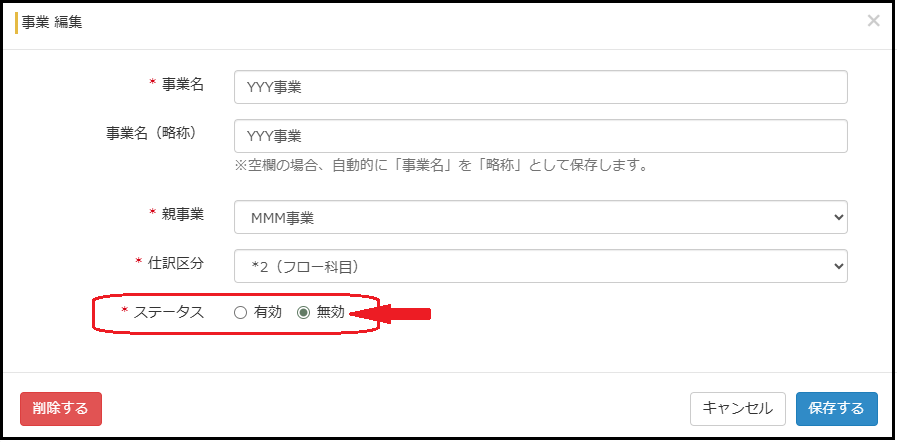 ⑨MMM事業などが残っているので、「無効」にするか「削除」する(余分なものは無くすほうがいい)
