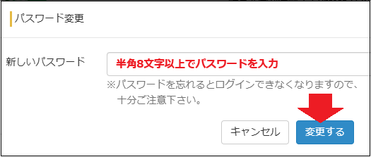 「変更する」をクリックして新しくパスワードを入力して保存します
