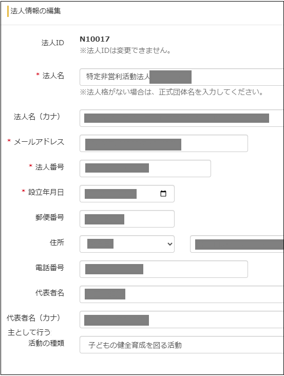 法人の住所や電話番号、代表者などが変更になったときに修正できます