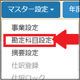 (1)上部メニューの「マスター設定」から「勘定科目設定」を選択