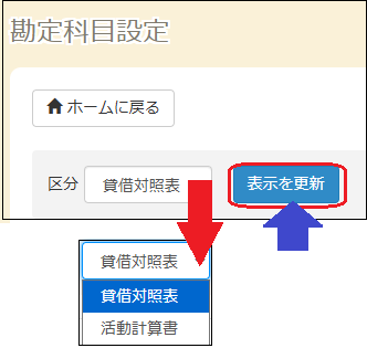 区分で「貸借対照表の科目」と「活動計算書の科目」にわかれていますので