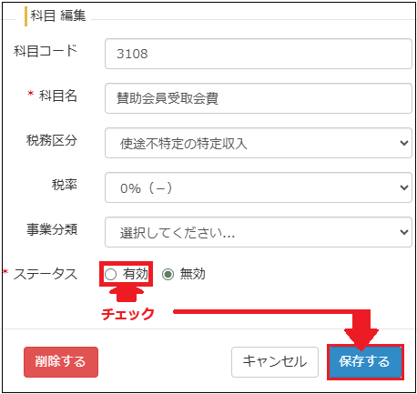 リストを確認して、必要な科目は「有効」にし、不要な科目は「無効」にします
