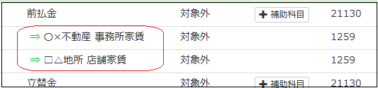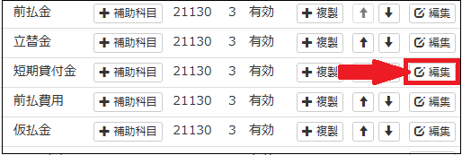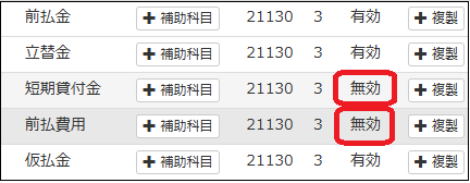 (例)すでにある科目(前払金、立替金、短期貸付金、前払費用、仮払金補助科目あり)