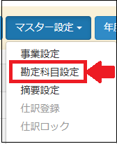勘定科目を変更する場合は、メニューの「マスター設定」から「勘定科目設定」を選びます