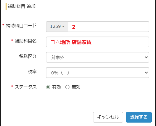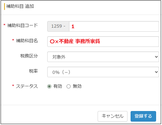 あらたに作る科目は「親科目」か「補助科目」かを決めておきます